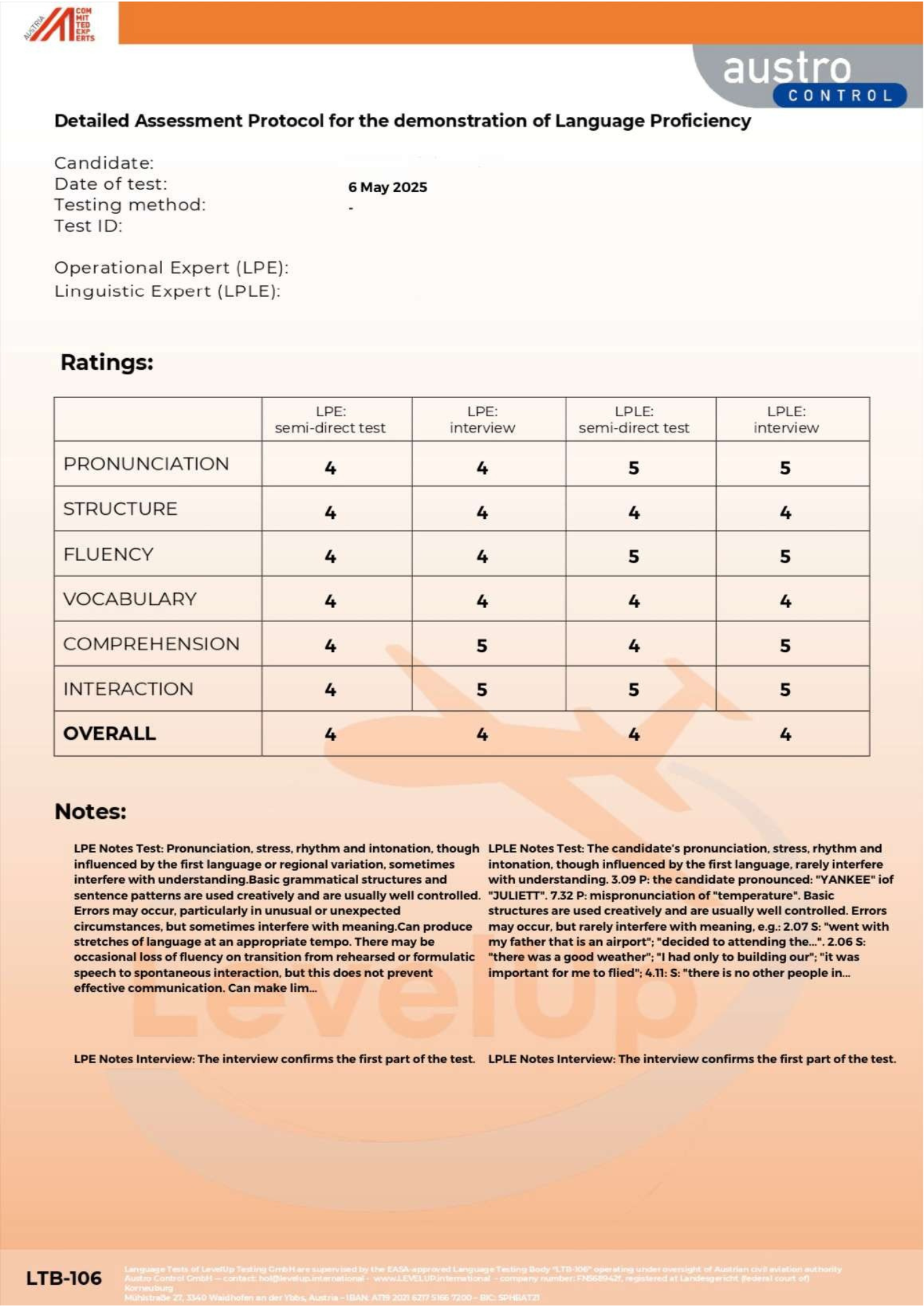 The test follows ICAO’s standardized format and is suitable for pilots, air traffic controllers, and other aviation personnel needing language certification.